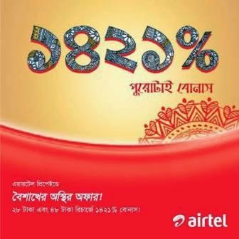 airtel Bonus On Recharge offer! Customers will get the bonus on 28tk, 48tk and 101tk recharge only